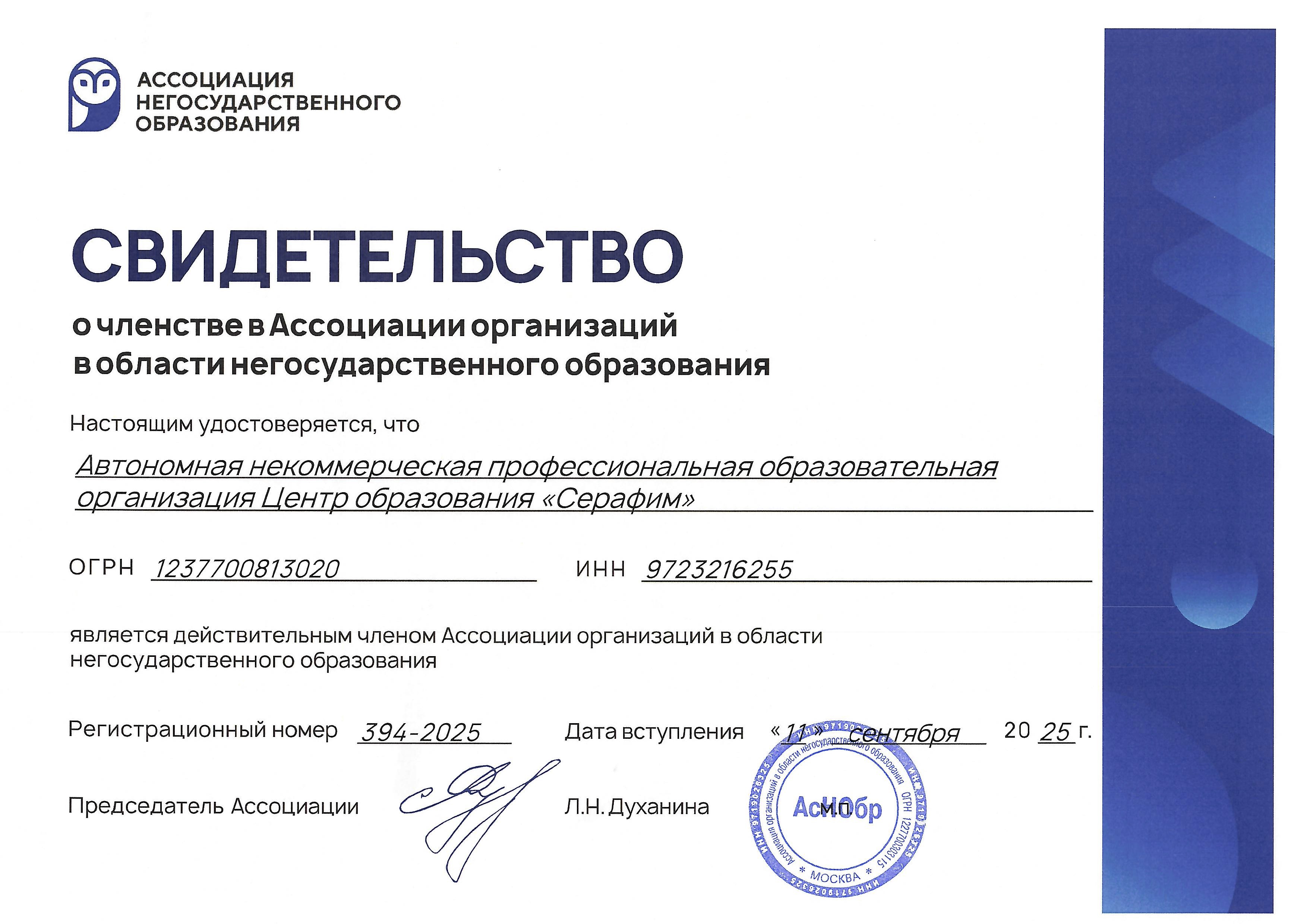 Наш Центр образования вошел в состав Ассоциации организаций в области негосударственного образования.
